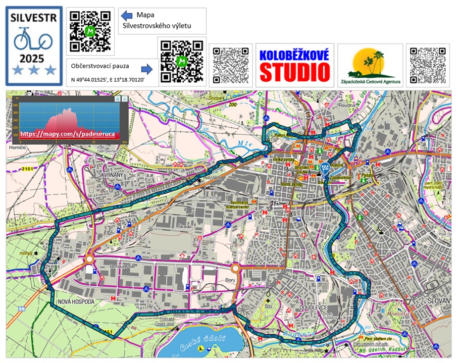 Lehká rovinatá vyjížďka 20,5 km podél plzeňských řek nebude sportovním výkonem ale spíše společenské setkání jezdců na koloběžkách, k příležitosti konce roku. Dobrou náladu, teplé nápoje či jiné nápoje na zahřátí sebou. Při zastávce bude připraveno svařené víno a teplý čaj. Startovné dobrovolné na podporu koloběžkových výletů a koloběžkových akcí. Účast na Silvestrovské Koloběžkové Jízdě je na vlastní nebezpečí. Účast nezletilých účastníků do 18 let je povolená pouze za přítomnosti jejich zákonného zástupce, nebo jím určené dospělé osoby. Fotografie a případný videozáznam ze Silvestrovské koloběžkové Jízdy, bude využit ve prospěch propagace koloběžkových výletů, koloběžkového sportu a dalších akcí pořádaných pořadatelem. S osobními údaji účastníků bude nakládáno v souladu s GDPR (nařízením EU 2016/679) .